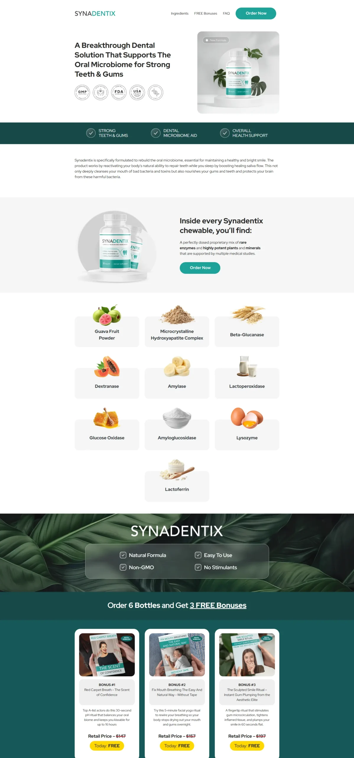 Synadentix is formulated to help support the oral microbiome, contributing to strong teeth and healthy gums while promoting overall oral health as you sleep.